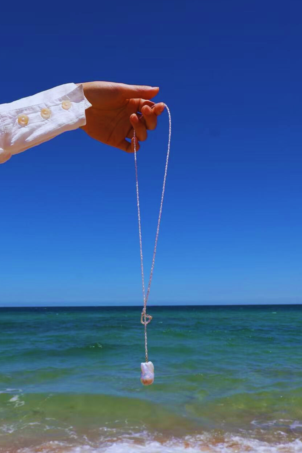 This is a long pearl necklace designed for modern life: adaptable, expressive, and timeless.