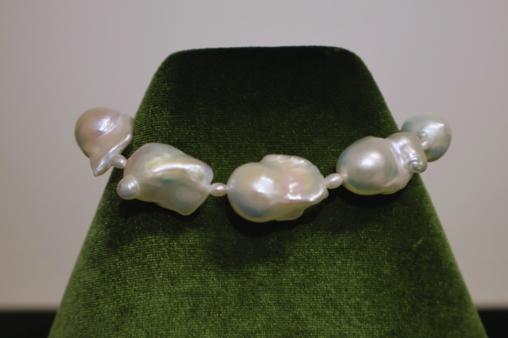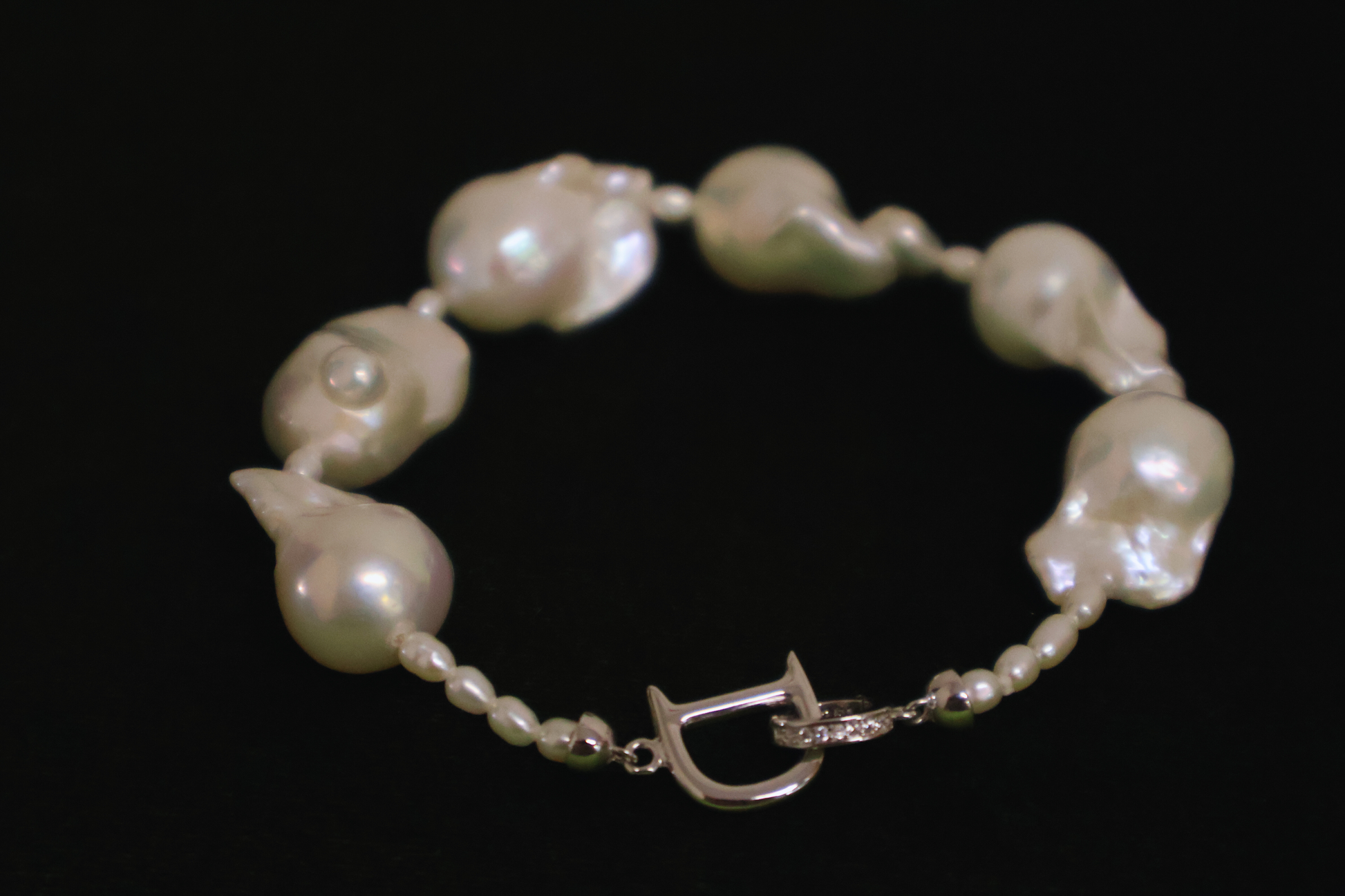 Diana – Large Baroque Pearl Bracelet with Pavé D Clasp