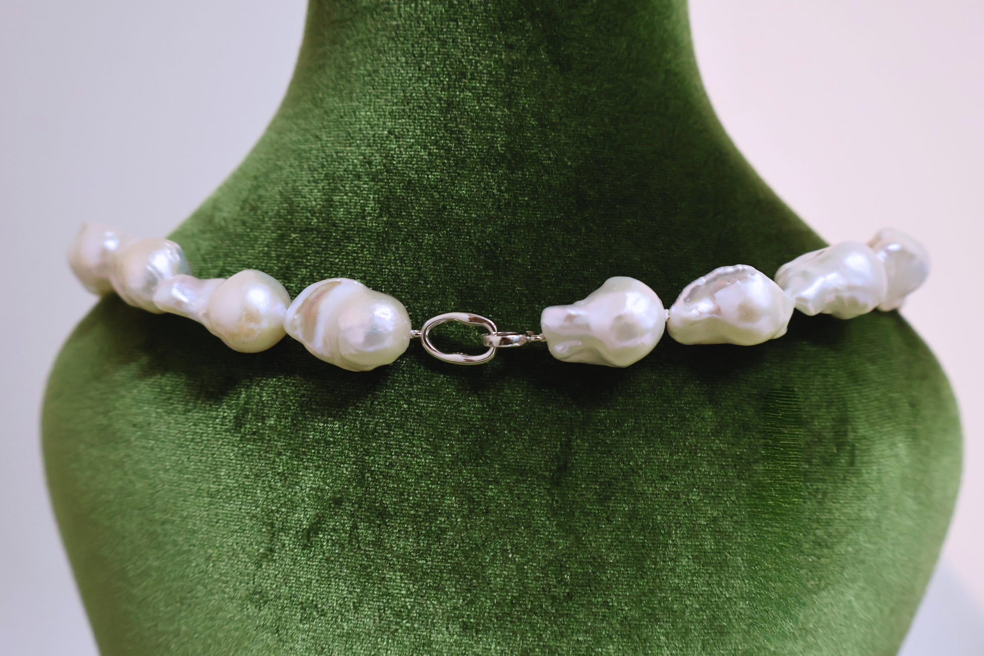 Centered around large, naturally formed baroque pearls, this piece embraces weight, scale, and substance. Each pearl is chosen for its individuality, lustre, and commanding presence, creating a necklace that feels intentional, enduring, and deeply personal.